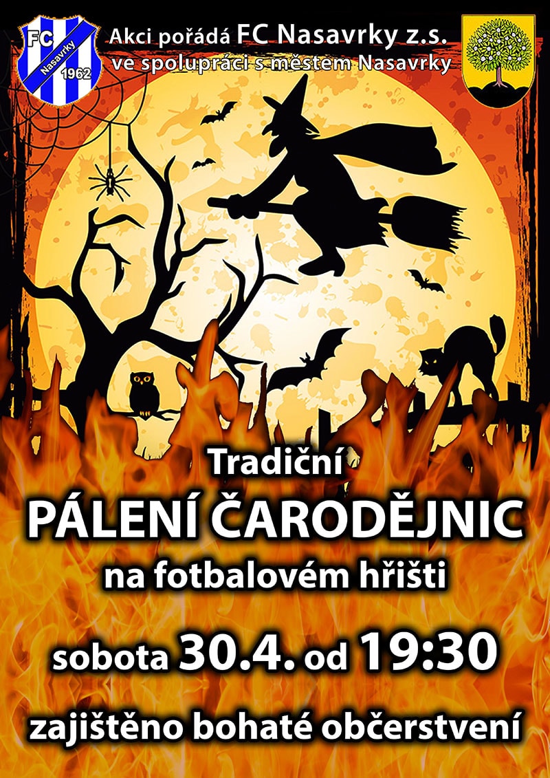FC Nasavrky Vás srdečně zve na tradiční pálení čarodějnic, které se koná v sobotu 30. dubna 2016.Bližší informace na přiloženém plakátě.